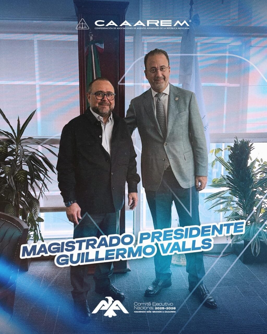 El presidente de la CAAAREM, A.A. José Ignacio Zaragoza Ambrosi, se reunió con el magistrado presidente del TFJA, Mtro. Guillermo Valls Esponda, para renovar el convenio de colaboración y reforzar el compromiso de impulsar un comercio exterior más sólido y confiable para México.