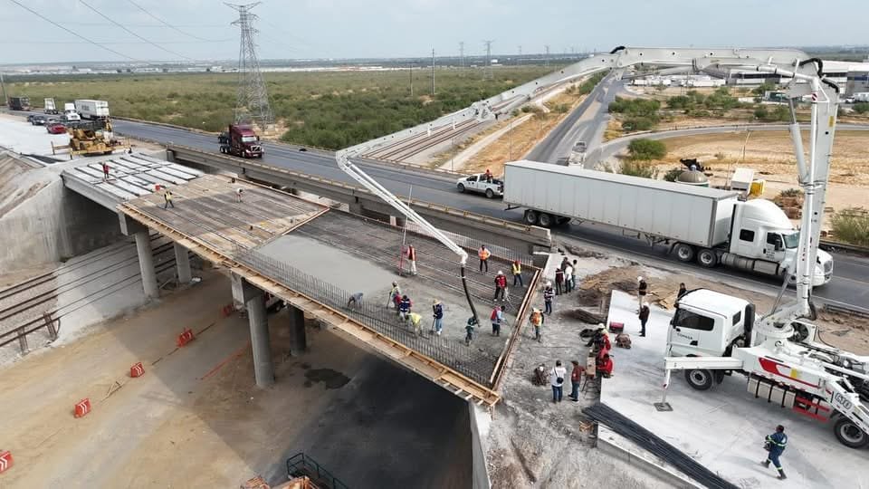 Se realizó el colado de la losa sur del Puente de la Carretera Mex II, la primera de las tres losas que conformarán por completo esta importante estructura vial. Este avance marca un hito en la modernización de la movilidad del transporte comercial en Nuevo Laredo.