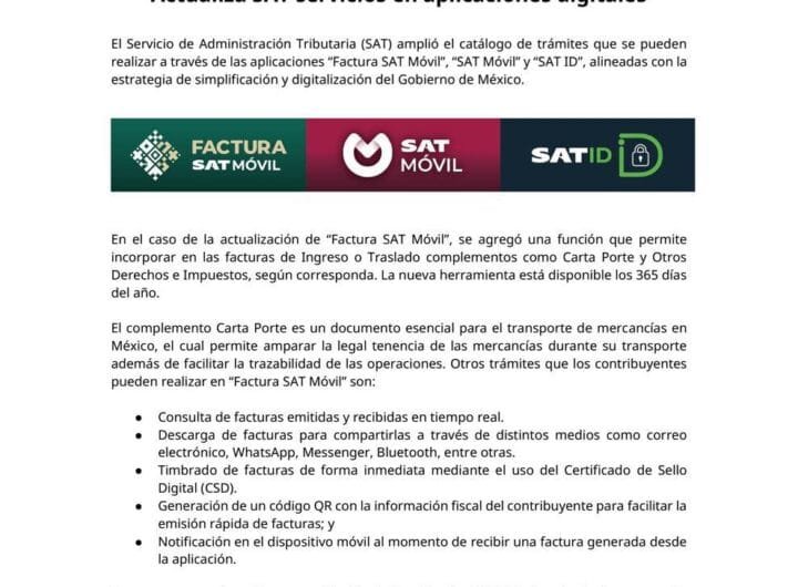 El Servicio de Administración Tributaria (SAT) informó que ahora...