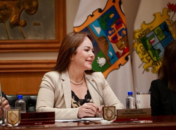 La presidenta municipal, Carmen Lilia Canturosas Villarreal, junto con...