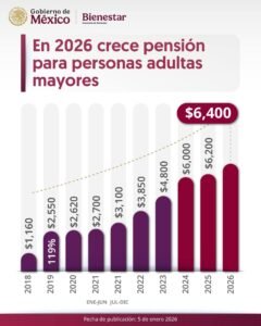 • Pensión para el Bienestar de las Personas Adultas Mayores: 6,400 pesos.